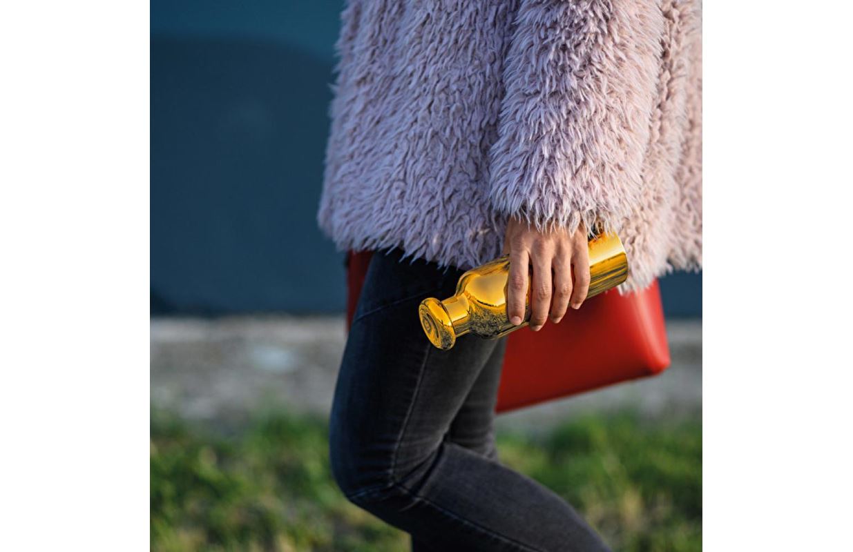 Eurotents Flaske Thermal Travel Guld GuzziniGuzzini ENERGY Special Edition rejseflaske lavet af forkromet rustfrit stål. Ideel til at bære vand, kaffe, te eller andre drikkevarer på en miljøvenlig måde og holde dem ved den rigtige temperatur. Farve: Guld